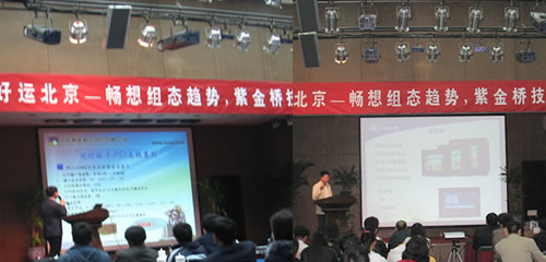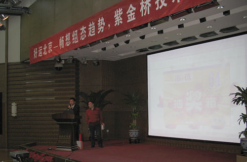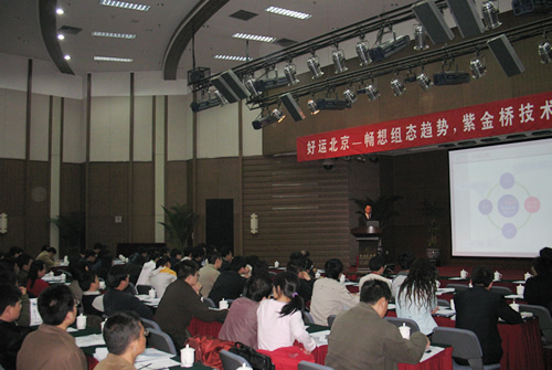 2008年4月8日,北京城不時下起陣陣小雨,雖然天公不作美,但“好運北京,暢想組態(tài)趨勢,分享精彩未來”卻如期火熱舉行,不到1點已有60多人提前來到金碼大酒店,并與紫金橋工程師展開交流,許多外地用戶也如邀而至,下午1點30分,來自北京及周邊城市的 130余名工控界用戶與紫金橋共同見證了“好運北京”的開幕。