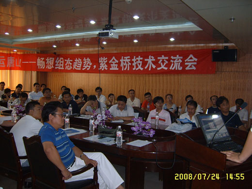 2008年7月24日,好運2008,紫金橋暢想組態趨勢盛會的最后一站抵達河北工業重鎮唐山市,來自唐山及周邊城市的六十余名自動化業內人士齊聚唐山凱源飯店,與紫金橋的工程師一同分享了紫金橋最新的產品(Real-V6.0)的卓越性能和行業典型應用案例,紫金橋合作伙伴唐山藍迪通信科技應邀出席此次會議。