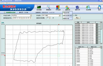 1、直觀的顯示油井當前的各項參數,比如電參數、抽油機井口壓力、運行狀態、沖程、沖次等,其中電流、功率、載荷等重要數據以曲線圖的形式顯示。
