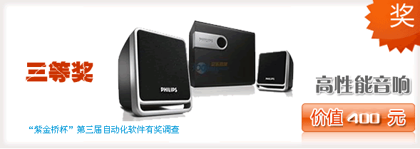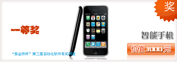 在總結(jié)第一屆和第二屆自動化軟件有獎?wù){(diào)查后推出“紫金橋杯”第三屆(2009)自動化軟件有獎?wù){(diào)查,并將為用戶提供更加豐厚的禮品,調(diào)查獎品包括筆記本電腦、智能手機(jī)、M-ZUNE、高性能音響、數(shù)碼相框等豐厚禮品,同時還將發(fā)放超過100份的紫金橋大禮包。我們期待您積極的參與!