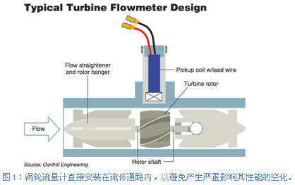 基于與人類歷史一樣古老的原理再結(jié)合運(yùn)用新的技術(shù),可有效提高渦輪流量計(jì)的測量準(zhǔn)確性、可重復(fù)性及可靠性。 可用尺寸至12英寸 ( 300毫米)且能適應(yīng) 10,000 psi (689巴)過程壓強(qiáng)及 1,000 βF(538℃)過程溫度的渦輪流量計(jì),適用于全球化工、石化、制藥及食品飲料等行業(yè)應(yīng)用。 渦輪流量計(jì)的基本構(gòu)造是安裝在流體管中的一個(gè)裝有葉片的轉(zhuǎn)子(參見圖1)。隨著流體(氣體或液體)介質(zhì)流過轉(zhuǎn)子葉片,即在每一葉片背面形成一個(gè)低壓區(qū),從而推動(dòng)轉(zhuǎn)子轉(zhuǎn)動(dòng)