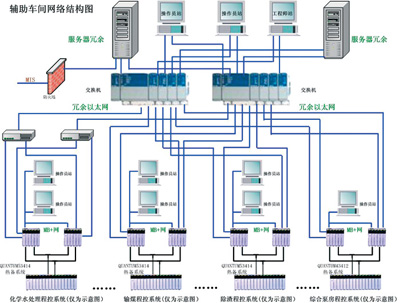 本論文對(duì)華能沁北電廠輔助車間控制網(wǎng)的方案、功能及實(shí)施等進(jìn)行了詳細(xì)描述,著重闡述了QUANTUM PLC在整個(gè)輔助車間控制網(wǎng)中的作用,同時(shí)對(duì)其他電廠的相關(guān)技術(shù)人員有一定的參考作用。 系統(tǒng)概述 華能沁北電廠一期(2X600MW)輔助車間控制網(wǎng)(以下簡(jiǎn)稱沁北電廠輔控網(wǎng))是對(duì)各個(gè)輔助系統(tǒng)進(jìn)行集中監(jiān)視和控制的系統(tǒng),包括了以下的子控制系統(tǒng): ■化學(xué)水處理系統(tǒng)(包括鍋爐補(bǔ)給水系統(tǒng),超濾反滲透系統(tǒng)) ■飛灰輸送系統(tǒng) ■除渣系統(tǒng) ■凝結(jié)水精處理系統(tǒng) ■電除塵系統(tǒng) ■燃油泵房系統(tǒng) ■綜合水泵房系統(tǒng)(包括空壓機(jī)系統(tǒng),采暖加熱站) ■工業(yè)污廢水系統(tǒng)(包括生活污水處理系統(tǒng)) ■輸煤程控系統(tǒng)(包括煤水處理系統(tǒng)) 輔助車間的監(jiān)控系統(tǒng)分兩層,第一層即現(xiàn)場(chǎng)控制層,該層是生產(chǎn)控制的執(zhí)行層,包括化學(xué)水處理系統(tǒng)、除灰渣、電除塵、燃油泵房、綜合水泵房、采暖加熱站、工業(yè)污廢水等各輔助車間控制系統(tǒng)的QUANTUM PLC和就地控制室上位工控機(jī)通過MB+網(wǎng)構(gòu)成的各輔助車間完整的監(jiān)視與控制系統(tǒng)。第二層即輔控網(wǎng)監(jiān)控層,是全廠輔機(jī)控網(wǎng)系統(tǒng)的核心層,采用光纖、光纖收發(fā)器、交換機(jī)、服務(wù)器及工控機(jī),構(gòu)成上一層完整的 監(jiān)視控制系統(tǒng)。輔控網(wǎng)監(jiān)控層與現(xiàn)場(chǎng)控制層之間采用冗余星型網(wǎng)連接,使得整個(gè)系統(tǒng)具有極高的可靠性。 系統(tǒng)工藝描述 在華能沁北輔控網(wǎng)中,2臺(tái)服務(wù)器負(fù)責(zé)獲取I/O信息,生成數(shù)據(jù)庫(kù)。操作員站提供標(biāo)準(zhǔn)的HMI畫面供運(yùn)行人員操作,同時(shí)還要具備系統(tǒng)報(bào)警顯示查詢、報(bào)表制作、趨勢(shì)顯示、系統(tǒng)狀態(tài)診斷、控制系統(tǒng)組態(tài)、數(shù)據(jù)庫(kù)的管理和維護(hù)、上位機(jī)畫面的編輯和修改等等功能。同時(shí)輔控網(wǎng)對(duì)系統(tǒng)的相關(guān)參數(shù)有嚴(yán)格的要求: ■QUANTUM PLC CPU模件的負(fù)荷率必須小于40%; ■通訊網(wǎng)絡(luò)的負(fù)荷率必須不大于25%; ■I/O點(diǎn)裕量為10%,I/O卡槽裕量為15%; ■內(nèi)部存儲(chǔ)器占用容量≤50%,外部存儲(chǔ)器占用容量≤40%; ■電氣模擬量輸入采樣周期≤50ms 非電氣模擬量輸入采樣周期≤200ms,開關(guān)量采樣周期≤100ms; ■整套控制系統(tǒng)的可用率為99.9%; ■每幅畫面上實(shí)時(shí)數(shù)據(jù)更新時(shí)間不大于1秒; ■運(yùn)行人員通過鍵盤、鼠標(biāo)等手段發(fā)出的任何操作指令均能在1秒內(nèi)被執(zhí)行; ■LCD每幅畫面上調(diào)出畫面時(shí)間≤2秒; 因此,系統(tǒng)的難點(diǎn)和重點(diǎn)在于輔控網(wǎng)系統(tǒng)的網(wǎng)絡(luò)設(shè)計(jì)。一個(gè)優(yōu)秀的網(wǎng)絡(luò)設(shè)計(jì)要滿足以下幾個(gè)方面的要求: ■可擴(kuò)展性:系統(tǒng)的規(guī)劃必須考慮到將來發(fā)展的需要; ■高可用性:系統(tǒng)必須設(shè)計(jì)為冗余,既可以是CPU冗余,也可以是網(wǎng)絡(luò)鏈路冗余或服務(wù)器冗余,還可以是以上幾個(gè)冗余的結(jié)合; ■靈活性:設(shè)計(jì)良好的網(wǎng)絡(luò)能夠最大限度地降低添加、變更或拆除設(shè)備帶來的影響; ■故障的可追蹤性:當(dāng)系統(tǒng)發(fā)生故障時(shí),設(shè)計(jì)優(yōu)良的網(wǎng)絡(luò)使得維護(hù)人員可以方便準(zhǔn)確地確定故障點(diǎn)以及排除故障的方法。 在以上的幾個(gè)對(duì)網(wǎng)絡(luò)的基本要求中,高可用性是一個(gè)優(yōu)秀網(wǎng)絡(luò)設(shè)計(jì)人員的首選,是重中之重。在沁北輔控網(wǎng)中,現(xiàn)場(chǎng)控制層通過將系統(tǒng)設(shè)計(jì)為CPU冗余,同時(shí)本地站與遠(yuǎn)程I/O站采用雙纜結(jié)構(gòu)通訊,現(xiàn)場(chǎng)上位機(jī)通過兩塊網(wǎng)卡實(shí)現(xiàn)網(wǎng)絡(luò)鏈路冗余以實(shí)現(xiàn)系統(tǒng)的高可用性;輔控網(wǎng)監(jiān)控層通過服務(wù)器冗余和交換機(jī)冗余保證了系統(tǒng)的高可用性。 系統(tǒng)的組成及施耐德解決方案 沁北電廠輔控網(wǎng)的子控制系統(tǒng)中的化學(xué)水處理系統(tǒng)、輸煤程控系統(tǒng)、除灰程控系統(tǒng)、凝結(jié)水精處理系統(tǒng)、綜合水泵房系統(tǒng)(包括空壓機(jī)系統(tǒng),采暖加熱站),燃油泵房系統(tǒng),工業(yè)污水處理系統(tǒng)(包括生活污水處理系統(tǒng))系統(tǒng)均采用Modicon QUANTUM PLC。每個(gè)控制站均包括有Modicon QUANTUM CPU、電源、本地I/O模塊、遠(yuǎn)程I/O通訊模塊,以及現(xiàn)場(chǎng)輔助監(jiān)控工作站等。 沁北電廠輔控網(wǎng)網(wǎng)絡(luò)采用冗余星型結(jié)構(gòu)。兩臺(tái)服務(wù)器、兩臺(tái)網(wǎng)絡(luò)中心交換機(jī)布置在集控樓的機(jī)房?jī)?nèi),3臺(tái)監(jiān)控工作站及工程師站均布置于中央控制室。服務(wù)器、監(jiān)控工作站及工程師站通過冗余通道與中心交換機(jī)連接。網(wǎng)絡(luò)中心交換機(jī)通過冗余光纖分別與各輔助輔助車間控制系統(tǒng)的交換機(jī)連接,構(gòu)成網(wǎng)