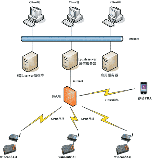 圖3:05103v 型測風裝置 傳感器關系到監測數據的準確性和可靠性,并且傳感器屬于易損設備。在本項目中,考慮現場的的復雜情況,必須選用可靠、穩定、易維護的傳感器。本項因此,采用進口傳感器作為數據采集終端。 水位傳感器:本系統選用德國OTT數字雷達液位傳感器KALESTO,其主要技術指標如下: ■ 測量原理:采用連續調頻波;FM: 24.125 GHz; ■ 波段:24,125GHZ。 ■ 輻射角:5°C; ■ 供電:10.5~15 VDC; ■ 量程:0~30米; ■ 精度:1cm; ■ 分辨率:1mm; ■ 數字輸出:RS485/9600bit/s; ■ 內充N2,防雷電; ■ 防護等級:IP68;帶繼電保護; ■ 工作溫度:-40~+85°C 分速風向傳感器:本系統選用美國YOUNG公司生產的05103v型測風裝置,其主要技術指標如下: ■ 風速: 0-60 m/s ■ 最大抗風: 100 m/s ■ 風向: 3 ■ 分速: ±0.3 m/s (0.6 mph) ■ 風向: ±3 degrees ■ 最小臨界值:* ■ 風速: 1.0 m/s ■ 風向: 1.1 m/s ■ 供電:8-24 VDC (5 mA @ 12 VDC) ■ 工作溫度:-50 to 50° C ■ 信號輸出:0-1.00 VDC full scale;0-5.00 VDC optional 現場能源供應及防雷 現場具備市電供應條件,因此采用市電供應。而防雷是現場必不可少的防護措施,由專業公司提供相關設備及施工,本方案不做闡述。 監測中心主要軟件服務器 監測中心根據系統需求,在考慮將來系統可拓展性的基礎上,建制了如下三個軟件服務器: ■ 系統應用服務器。該服務器承擔系統應用層面的所有功能。主要包括:數據展示、數據分析、報表、WEB發布、數據上報、系統維護等功能模塊?紤]到將來系統的拓展,系統功能的拓展,采用VB.NET開發; ■ SQL-server數據庫服務器。主要用于遙測數據的存儲; ■ iPush Server通信服務器。該軟件由臺灣艾揚科技開發,并已在臺灣及國外環境監測、智能交通等項目中得到了廣泛的應用。主要承擔現場設備與監測中心的通信、數據同步分發、通信端口設定等功能。 通過該軟件可以使系統具備如下特點: ■ 實現現場監測數據的主動上報。只需設定現場監測數據上報的條件,當上報時間或數據變動范圍等條件滿足系統設定要求時,系統對滿足條件的數據進行主動上報,將數據主動發送到監測中心,減輕監測中心工作量。并且,發送條件可以隨時通過監測中心的軟件進行遠程更新; ■ 保證數據在GPRS和internet傳遞過程中的安全性。該功能的核心是提供數據加密與提供數據保證送達功能,克服在GPRS和internet環境中經常發生的數據丟包、數據竊取等問題; ■ 科學的規劃現場設備與監測中心的通信通路,處理監測數據的重要性等級,滿足上百點監測設備同時上報數據的需要。亦可保證系統同時、同步與現場設備進行通信,進行現場程序更新、系統對時等操作。通過此功能,為將來系統的拓展預留了足夠的空間; ■ 實現監測中心與監測現場設備間的雙向通信?朔礼PRS網絡等動態IP網絡與固定IP間雙向通信困難的問題,使監測中心可以方便的了解監測現場設備的狀態,并可隨時向下發送命令或更新現場設備上的應用程序。 系統工作流程 每個現場監測站點需要監測影響海潮變化的三個參數:潮位、風速、風向。系統通過OTT的數字雷達液位傳感器采集潮位參數。該傳感器通過RS-485口與wincon8331主機連接,wincon8331通過EVC編寫的通信程序按照該公司提供的通信協議讀取該傳感器采集到的潮位值。系統通過YOUNG公司生產的05103v型測風裝置監測現場的風速和風向參數,由于該裝置提供兩路0-5V的電壓輸出,故通過在wincon8331上插入泓格公司的I-8017H并行模擬量采集模塊采集該裝置輸出的電壓值,再通過YOUNG公司提供的電壓\參數比對表換算出風速和風向參數。 Wincon8331通過RS-232口與赫立訊的GPRS模塊連接,通過內部的撥號程序撥入internet。由于Wincon8331提供一個10/100M網絡接口,將來在系統拓展的時候,將采用wincon8331的網口與GPRS路由器連接的方式來接入internet,并由GPRS路由器來保證網絡的暢通,讓wincon8331更專注與數據采集與運算。 在普通工況下監測站點需要wincon8331每5分鐘從前端傳感器采集一次數據,并按時間順序存儲在wincon8331的CF卡上。在完成存儲工作后,利用iPush?Server提供的現場API函數主動將數據發送到監測中心的iPush?Server,并由該API完成數據傳遞過程中的數據加密、數據保證送達、數據等級設置等工作,以保證數據的安全性和完整性。iPush?Server接收到來自現場的數據后,主動將數據同步發送到SQL-server數據庫、主應用程序和PDA上,保證所有應用程序得到的數據是同步、同樣的數據,避免數據不同步的現象發生。 在汛期或者其它要求情況下,wincon8331需要每30秒從前端傳感器采集一次數據(OTT的數字雷達液位傳感器采集一次數據需要約30秒),采集頻率的改變通過監測中心遠程更新現場的監測程序來完成。并且,這個過程由iPush Server提供的動態IP尋址、數據同步廣播機制和數據保證送達機制來保障,以此來保證數據的完整性和雙向的數據通信。這樣,所有站點的程序更新和對時可以通過一次操作來完成,并且即使出現網絡條件不好的狀態,操作人員也不需要進行重復操作,系統會利用保證送達機制自動處理,大大降低操作人員的工作量。