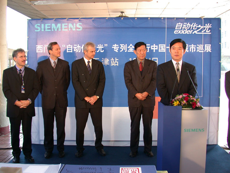 ---- 24日上午,在列車停靠的天津火車站舉行了隆重的開展儀式。天津市人民政府副市長楊棟梁及有關領導親臨現(xiàn)場并饒有興趣地參觀了整個列車,深為列車上展示的西門子的尖端工業(yè)科技所震撼,并表示了對此次活動的美好祝愿,強調(diào)了加強國際間科技交流,利用國際先進技術發(fā)展工業(yè)、經(jīng)濟的重要性。西門子(中國)有限公司自動化與驅(qū)動集團北方區(qū)總經(jīng)理薄淵寧先生也在開展儀式上表示了對天津市政府長期支持的感謝,并回顧了西門子與天津基礎工業(yè)經(jīng)濟長期合作的友好關系,同時希望以后能夠有更多的合作,共同推動天津市工業(yè)經(jīng)濟的建設和發(fā)展。