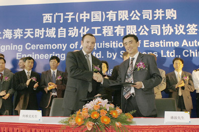 5月23日,在上海松江出口加工區,西門子(中國)有限公司和上海弈天時域自動化工程有限公司就業務并購舉行了協議簽字儀式。按照協議規定,上海弈天時域自動化工程有限公司將更名為西門子(上海)過程分析工程有限公司, 成為西門子中國有限公司自動化與驅動集團和西門子全球的過程儀表及分析業務。通過此次并購,西門子快速建立了本地系統集成能力,從而能夠更好地滿足客戶對整體解決方案的需求。西門子(上海)過程分析工程有限公司的成立將顯著增強西門子在中國過程分析工程領域的實力。