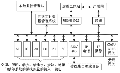 這些ENC參量控制模塊可以把智能建筑各子系統集成到以太網、電梯系統、火災報警等傳統設備上,帶有RS232或RS485接口,分別可接到ENCTRS200及ENCTRS400網關轉換模塊集成到以太網上,而IP電話及IP攝像機可以直接集成到以太網上。除此之外還提供CDMA/GRPS無線網關接口,例如系統報警信息即可通過該網關接口直接發送到手機上,并可通過手機對系統進行控制。