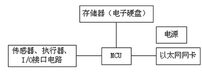 ② 硬件結構:由中央處理器MCU、以太網網卡、傳感器、執行器、I/O接口以及存儲器(電子硬盤),電源組成,如圖7所示。