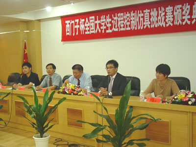 由中國系統仿真學會主辦,中國自動化學會協辦,北京化工大學與西門子(中國)有限公司共同承辦的2006年首屆西門子杯全國大學生過程控制仿真挑戰賽于8月27日順利閉幕。本次大賽受到了教育部的重視,教育部副部長吳啟迪親自參加了大賽的開幕式并發表講話。經過激烈角逐,來自中國石油大學的參賽隊獲得了一等獎,北京化工大學、華東理工大學和清華大學的參賽隊分獲二等獎,西安交通大學、西北工業大學、南京理工大學、華北電力大學、北京航空航天大學、華南理工大學獲得了三等獎。參加閉幕式的來賓包括中國系統仿真學會秘書長吳云潔女士、中國自動化學會副理事長孫柏林教授、北京化工大學副校長郭廣生教授、西門子(中國)有限公司A&D自動化系統部總經理安曉杰。