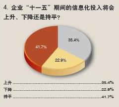 4企業“十一五”期間的信息化投入將會上升、下降還是持平?