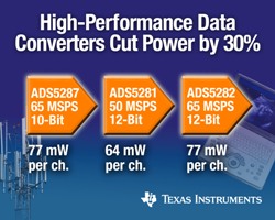 ADS5281、ADS5282 及 ADS5287 系列 ADC具有業界領先的最低功耗,比同類產品降低了 30%。在 65 MSPS 的最高采樣率下,ADS5281 系列每通道功耗僅為 77 mW。該新型產品系列憑借其動態縮放功能,在采樣率為 30MSPS 時,每通道的功耗可低至 48 mW。
