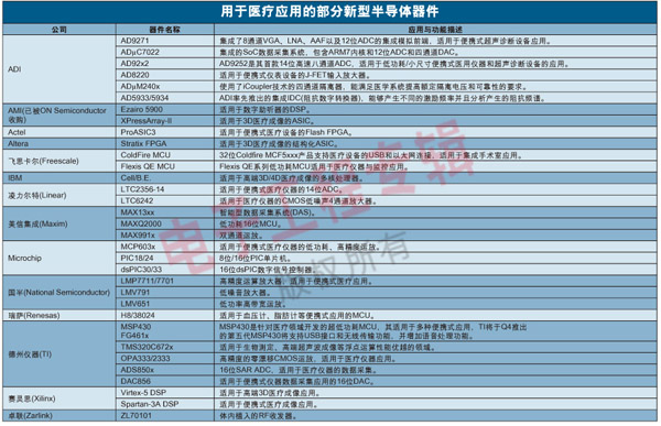 表1:用于醫療應用的部分新型半導體器件