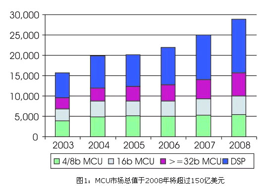 同時,MCU正把更多的外圍器件集成進來,以滿足各種特定的控制需要。例如,ZiLOG在8bit技術的發展演化方面正扮演著自己的角色,添加新的功能、并將數量越來越多的外設,如溫度傳感器、模數轉換器(ADC)、內部精密振蕩器(IPO)和通信功能,集成到其8bit系列器件中。較小的封裝和較低的耗電產品也深受歡迎。