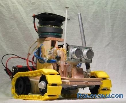 先看它的外形,你可以發現其獨特的造型,黃色的兩個坦克鋁鏈,就如同走路的兩個鞋子,前部的兩個像眼睛一樣的小喇叭,還能晃動,要是碰到可以敲打的東西,頂部的棒子就會敲打,相當可愛。主要的來說,這個黃色的鼓手機器人在其頭部裝了兩個微型麥克風/聲音傳感器,通過他們去尋找合適的物體作為“搖滾”對象,然后使用兩根鼓棒開始敲擊、錄音,最后還可以作為伴奏回放。