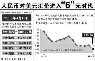 4月10日,人民幣對美元的中間價突破7元大關,以6.9920改寫了匯改以來的新高紀錄,人民幣匯率毫無懸念地進入“6時代”。