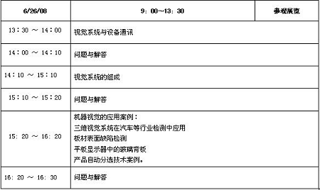 經過VisionChina組委會的精心安排,第三屆中國深圳機器視覺技術工業應用研討會暨研討會日程安排現已對外公布,具體安排請參看下表: