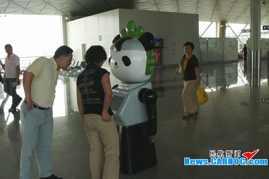 5月30日,由中國民航大學自主研發的奧運福娃機器人“晶晶”來到天津濱海國際機場新航站樓,進行為期一周的測試,之后將被送往首都國際機場三號航站樓承擔為中外旅客提供乘機禮儀服務的工作。