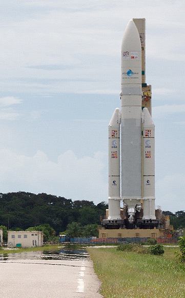 格林尼治時間12日22時05分(北京時間13日6時05分),歐洲阿麗亞娜5-ECA型火箭攜帶2顆衛星,從法屬圭亞那庫魯航天發射中心發射升空。