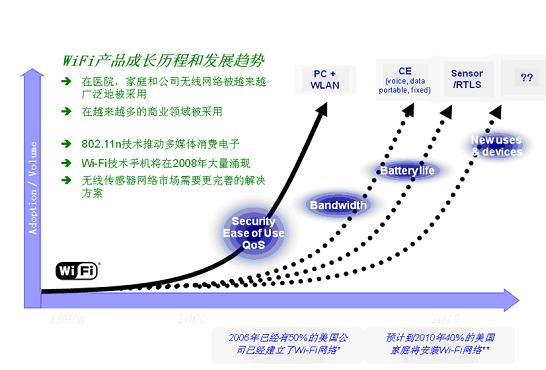 Wi-Fi正在吹響全面取代其他無線通信協(xié)議的戰(zhàn)斗號角,而Intel無疑則是這場戰(zhàn)役的大后方。2006年9月從Intel分拆出來的初創(chuàng)公司GainSpan聲稱,他們已經(jīng)擁有了在無線傳感器網(wǎng)絡(luò)(WSN)領(lǐng)域戰(zhàn)勝Zigbee的技術(shù)方案。GainSpan總裁兼首席執(zhí)行官Vijay Parmar不久前在上海接受采訪時表示,采用這家公司的WSN解決方案,不僅能夠享受到成熟的Wi-Fi技術(shù)帶來的各種好處,還能確保在單節(jié)AA電池下維持長達5~10年的電池壽命。