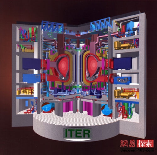 科學家們解釋說,ITER的目的其實就是要建造一個“人造小太陽”。在太陽的中心,溫度高達1500萬攝氏度,氣壓達3000多億個大氣壓,在這樣的高溫高壓條件下,核聚變放出大量能量。而ITER計劃模擬這一過程,將建設一個巨大的核聚變反應裝置。在這臺裝置的真空室內加入少量氫的同位素氘,像變壓器似的使其產生等離子體,然后提高密度、溫度,使其發生聚變反應,并釋放出巨大的能量。