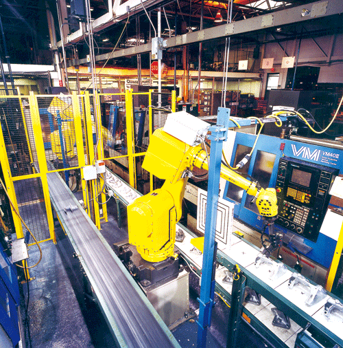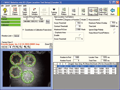 視頻系統能夠確定貨盤中、傳送帶上以不同方向排列的零件位置。FANUC公司提供無固定夾持裝置的零件儲存庫,這種儲存庫采用多層貨盤,當庫內沒有零件時,機器人可以將它們自動打開或關閉。然后再接近下一層裝有零件的貨盤庫。V-500iA系統使用的軟件具有對幾何形狀進行比較的特性,并以此來檢查一個物體的幾何形狀,而不是尋找一個經過培訓的像素圖形。這有利于確定機器人手中的零件位置是否在同一方向上,或零件是否被部分覆蓋。