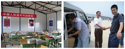 學校的周校長聽說我們帶來了1000套餐盤,感激地說到:“謝謝了,這正是我們急需的。”周校長的妻子和今年讀高三的女兒在5月12日那天雙雙罹難,短短幾分鐘,美滿的三口之家只剩下周校長一個人,但幸存下來的他沒有被悲痛擊倒,從他的眼里,我們看到的是堅強,是責任,是樂觀。在交談中我們能深深地感受到他們的悲傷和恐懼,但他們比我們想象中得更堅強、更自信、更樂觀,同為中華兒女,我們需要更加積極地生活和工作,用自己的力量來幫助他們重建家園,開始新的生活。
