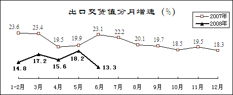 工業產品出口增幅回落。工業出口 交貨值38334億元,同比增長17%,增速同比減緩4.7個百分點。