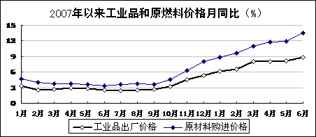 上半年,工業品出廠價格同比上漲7.6%(6月當月上漲8.8%),漲幅同比提高4.8個百分點;原材料、燃料、動力價格上漲11.1%(6月當月上漲13.5%),提高7.3個百分點。