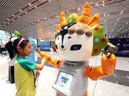 福娃機器人可以通過胸前的觸摸屏提供機場及奧運會信息咨詢,為旅客提供候機樓內的指路引導服務。