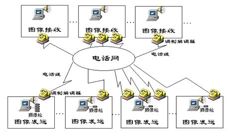 Boxer電話撥號網(wǎng)圖像遠(yuǎn)程實(shí)時(shí)監(jiān)控系統(tǒng)由如下部分組成: 電話撥號網(wǎng),圖像發(fā)送器,圖像接收器 電話撥號網(wǎng)由調(diào)制解調(diào)器,電話線,公共電話網(wǎng)通過計(jì)算機(jī)撥號連接建成。
