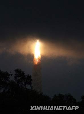 新華網(wǎng)孟買10月22日電 印度空間研究組織22日用一枚極地衛(wèi)星運(yùn)載火箭將印度首個(gè)月球探測(cè)器“月船1號(hào)”發(fā)射升空。
