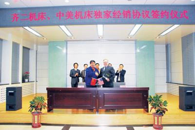 10月15日,在齊齊哈爾市,齊二機床與中美機床公司簽訂了獨家經銷協議,中美機床公司正式成為齊二機床美國地區獨家總經銷商,并在今年年末之前,中美機床公司向齊二機床提供價值200萬美元的首批產品訂單。