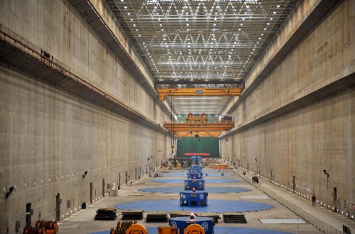 10月29日拍攝的三峽工程右岸電站廠房內景。