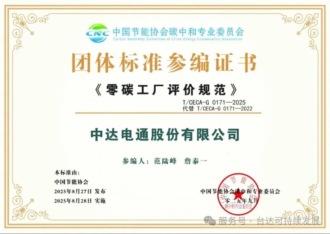 近日,中國節能協會正式發布《零碳工廠評價規范》(T/CECA-G 0171-2025),取代2022年版本,為制造業零碳轉型提供更科學、更全面的評價依據。中達電通股份有限公司(臺達子公司,簡稱中達電通)憑借在綠色制造領域的卓越貢獻和豐富的零碳實踐經驗,成為該標準的重要參編單位之一,再次彰顯了臺達在可持續發展領域的標桿地位。