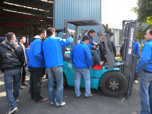 本次會議,事業部在各地的銷售代表共聚一堂,會議還專門請來了公司負責挖掘機銷售的顏學社總經理、總裁辦的莫湘雄和公司主管培訓工作的劉建光,分別從渠道管理、挖機營銷方案等的成功案例、山河智能企業文化以及營銷激勵等方面和大家一起做了分享,還請了工業車輛研究院叉裝所的技術人員對伸縮臂叉車、滑移裝載機的相關知識進行了培訓。