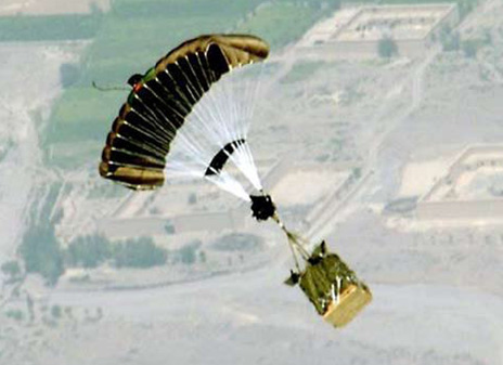 聯合精確空投系統(JPADS)能夠在高緯度、自動執行空投,并大大增加了地面落點的精確度。該系統由一族不同大小、高度的滑翔天蓬組成,能夠空投不同重量類別的裝備。目前,正在進行能夠投送2000磅和10000磅的空投系統的項目。輕型重量類別主要由海軍陸戰隊和特種作戰部隊,陸軍技術目標(ATO)也論證了能夠投送30000磅空投系統的項目。聯合精確空投系統并不完全依靠風的作用,能夠在高達25000英尺海拔高度進行空投。