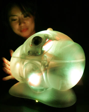 這個渾身發光的機器人身上配備著傳感器和照相機,不僅能用于室內照明,還可以察覺房屋內諸如有人擅自闖入、噪音、異味、溫度等異常狀況,通過手機報告給主人。