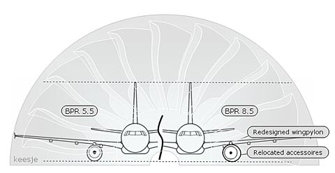 這一技術進步來源于斯奈克瑪公司90年代進行的“高效、靜音復合材料風扇葉片”(MASCOT)研究項目提供的技術儲備,當時研究了大直徑復合材料風扇葉片的空氣動力學、聲學、力學原理,以提高發動機性能,降低燃油消耗,減少噪聲和污染排放等;結果表明,應用該技術制作的葉片不僅重量輕,而且結構牢固,抗大體積鳥撞擊能力強,制造成本卻相對較低。