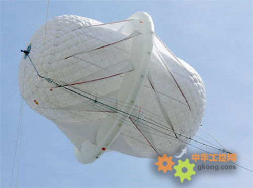 空氣轉動渦輪的外形酷似飛船,是一種位于高緯度的風力發電機,其內部充滿了氦氣所以可以保持漂浮狀態。最高可以栓在1000英尺的空中。