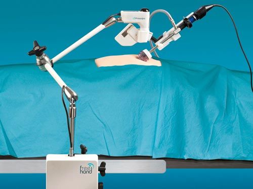 外科醫生可以用腳來操作“FreeHand”儀器,這種腹腔鏡攝像機通常在進行微創手術時使用(亦稱“鎖孔手術”)。這意味著醫生在手術中可以空出手來。(圖:Prosurgics有限公司)