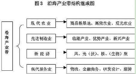 產業是江蘇沿海開發的重點,產業結構的先進性在很大程度上決定著江蘇沿海開發的層次和水平。江蘇沿海產業帶建設要以產業結構為導向,把區位資源優勢轉變為產業優勢,技術優勢轉化為產品優勢,貿易優勢轉變為市場優勢,提升江蘇沿海地區整體實力和綜合競爭力。江蘇沿海產業帶建設要符合江蘇沿海地區綜合發展的戰略定位,要放在經濟全球化和區域經濟一體化深入發展,國際間產業轉移和區域間經濟合作不斷深化的大背景下,放在有利于全國沿海地區生產力布局和長三角地區產業優化升級和整體實力提升,帶動中西部地區發展和促進與東北亞地區合作的高度。江蘇沿海地區產業規劃的目標是建立以現代農業為基礎、先進制造業為主體、生產性服務業為支撐的產業協調發展新格局。按照集中、集聚、集約開發的原則,運用循環經濟的理論指導沿海產業布局和項目選擇,切實轉變經濟發展方式,大力發展附加值高、科技含量高的臨港產業、優勢產業新興產業,全面提升產業帶建設水平。