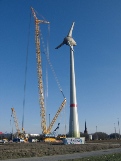 由德國Enercon公司制造E-126型風力渦輪機是當前世界上最大的風力渦輪機,該機組的轉子直徑達126米(413英尺),是最先裝機容量6MW的E-112型的改進版。E-126型風力渦輪機的裝機容量可達七兆瓦,足以為五千個歐洲家庭提供電能。最初的E-126部署在德國的愛姆登。