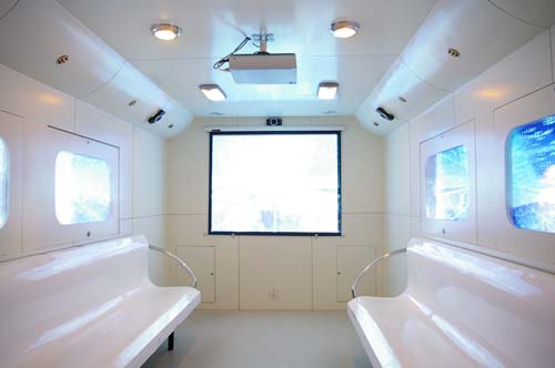 駕駛戰機被擊中,你將如何逃生?在國防科技展廳,你將可體驗駕駛航母艦載機升空戰斗。據了解,該飛機是按蘇27式飛機1∶1仿制。起飛、左右翻滾、瞄準、射擊、登陸,你可駕駛飛機做出各種動作并參與戰斗。據稱,飛機被敵人擊中的幾率為40%,一旦被擊中,你只能選擇“逃生”——此時,你會被從坐椅上彈起2米多高!有趣的是,登機前你還得稱體重,這是為了根據你的體重調試“彈射”設備。
