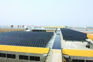 昨天,北京中錦陽150兆瓦非晶硅薄膜太陽能電池基地一期50兆瓦工程正式投產,同時,位于該公司廠房屋頂上的太陽能光伏發電站也正式發電。該屋頂發電站占地面積9000平方米,裝機容量0.33兆瓦,共使用非晶硅薄膜太陽能電池8300塊,太陽能板總面積達6557平方米,預計年可發電43萬度。按照一般家庭年均耗電1000度計算,可供應400個家庭一年的用電量。目前,該公司的照明和空調用電,全部由屋頂發電站供應。這一屋頂發電站不但是本市目前最大的光伏發電項目,也是國內目前最大的非晶硅薄膜光伏電站,年可減少二氧化碳排放量338噸。
