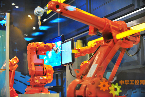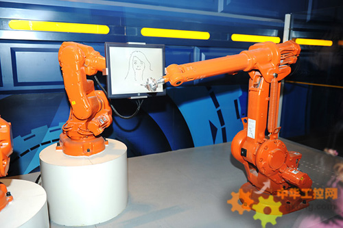 在4臺機器人的完美配合下,觀眾一進入展臺,機器人歡迎單元的IRB 1410機器人立即發(fā)出歡迎問候并做出歡迎動作,展示出機器人與周邊設備的智能配合能力和精確的運行路徑;在隨后的機器人繪畫單元,攝像頭將采集觀眾的肖像,2臺IRB 140機器人結合多傳感器信息融合技術,協(xié)同在畫板上繪制觀眾肖像,展示了機器人強大的可擴展能力和柔性生產能力;在機器人簽名單元,工控設備記錄下參觀者在寫字板上的簽名過程,IRB 1410機器人夾持畫筆在參觀者的肖像畫上再現(xiàn)個性簽名,展現(xiàn)ABB機器人卓越的協(xié)調性。整個寓教于樂的簽名照制作過程僅耗時不到5分鐘,精彩呈現(xiàn)了機器人的高超技能和智能協(xié)作。