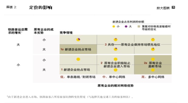其他行業(yè)的管制解除經(jīng)驗(yàn)為鐵路運(yùn)營商提供了一些經(jīng)驗(yàn)教訓(xùn),其中之一是,價格戰(zhàn)是徒勞無益的,通常會破壞行業(yè)的盈利性。但由于鐵路行業(yè)的獨(dú)特性,預(yù)測競爭會如何改變市場格局十分困難。例如,在鐵路客運(yùn)服務(wù)中,網(wǎng)絡(luò)效應(yīng)很普遍,因?yàn)檫B接乘客和眾多城鎮(zhèn)的線路往往具有高度的相互依賴性。