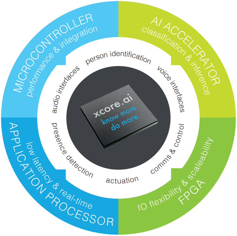當然,半導體行業內的差異化同樣也密切涉及市場營銷問題,或者大家說的應用生態能否支持的問題,不過作為一個技術驅動的行業,只要有足夠的創新還是能夠砍開一片市場。例如,在大家紛紛轉向Arm架構的時候,XMOS在全球首家推出了在一顆芯片上集成AI加速器、高性能DSP、控制MCU和靈活I/O的邊緣智能處理器xcore.ai系列,這些高性能、低延遲和低功耗的處理器可以根據客戶的需求進行定制,以適用于多樣化的邊緣AI場景,其最終可配置能夠完全通過軟件來打造,可用于消費電子、工業和汽車等眾多領域。