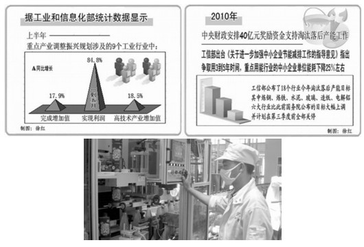 2010年,中央財政安排40億元獎勵資金,支持淘汰落后產能工作。今年2月,國務院下發《關于進一步加強淘汰落后產能工作的通知》;5月工信部公布了18個行業今年淘汰落后產能目標,其中煉鋼、煉鐵、水泥、玻璃、造紙、電解鋁六大行業比此前國務院公布的目標大幅上調,并計劃在第三季度前全部關停。
