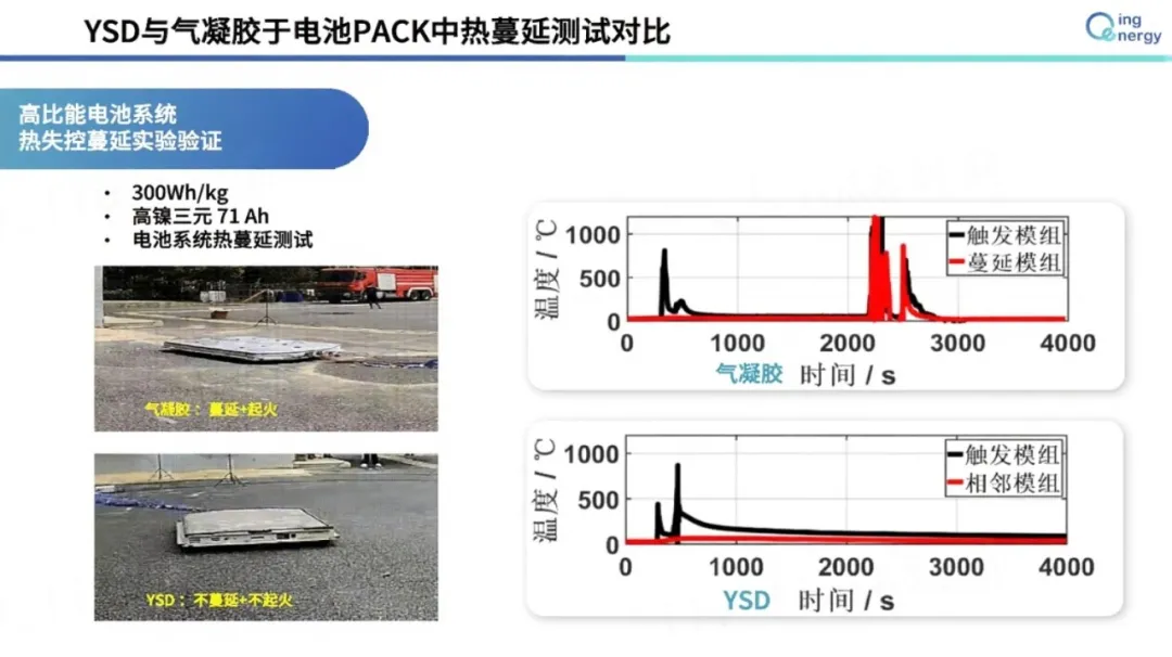 YSD與氣凝膠熱蔓延測試效果對比