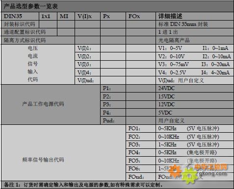 例 2:信號輸入:4-20mA;信號輸出:0-5KHz (集電極開路);工作電源:24VDC;產品型號:DIN35 1x1 OI-I4-P1-FO4