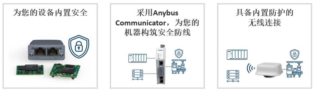 從嵌入式網絡接口(Anybus CompactCom 40)、工業網關(Anybus Communicator)到無線產品(Anybus Wireless),我們的解決方案使制造商能夠交付安全互聯的產品,而無需自行開發與維護底層網絡安全架構。